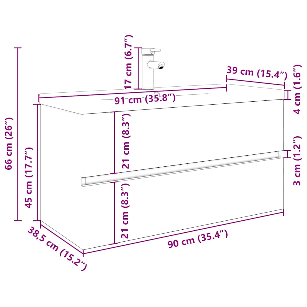 - Mål innebygd vask: 91 x 39 x 18 cm (L x B x H)