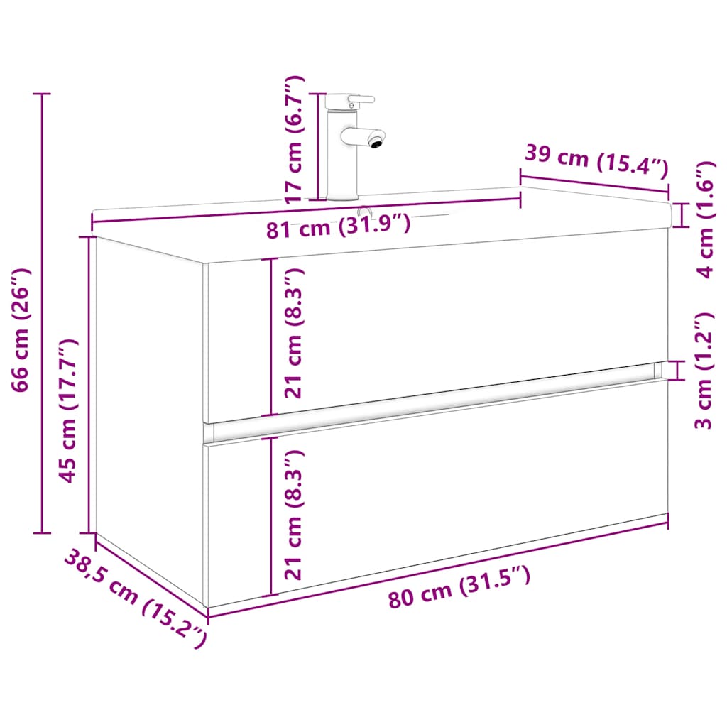 - Mål innebygd vask: 81 x 39 x 18 cm (L x B x H)