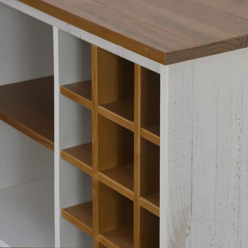 - Rikelig med oppbevaringsplass: Skapet har skyvedør, hyller og vinflaskeholdere, og gir allsidige oppbevaringsløsninger som holder drikking eller nødvendigheter organisert og rotfri. Skyvedøren maksimerer skapets kapasitet, og gjør det til et effektivt valg for å opprettholde en ryddig plass.