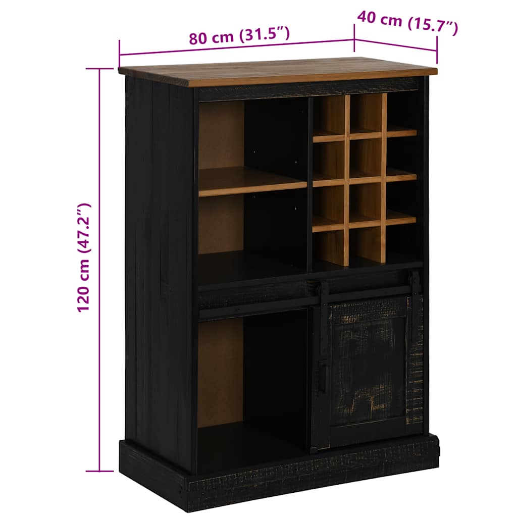 Vinstativ Vinskap HALDEN med vinstativer og skyvedørs Svart furu