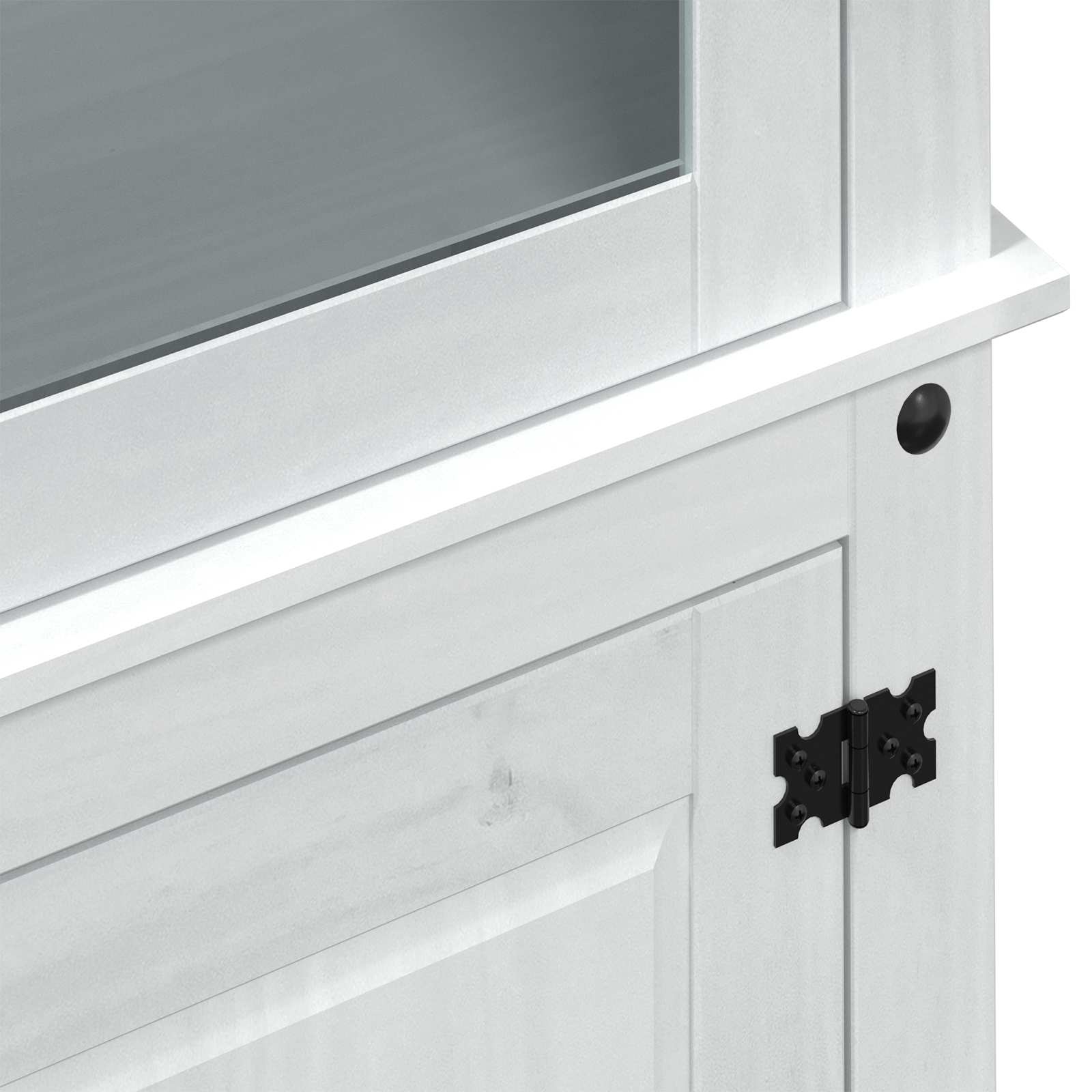 - Solid Furukonstruksjon: Dette vitrine skapet er laget av solid furutre, noe som gir et autentisk rustikk utseende med rike teksturer. Treet er kjent for sin holdbarhet, så skapet varer lenge og beholder sin sjarm.