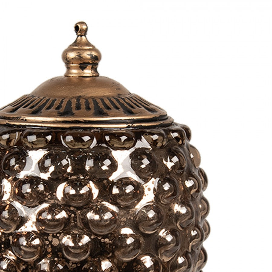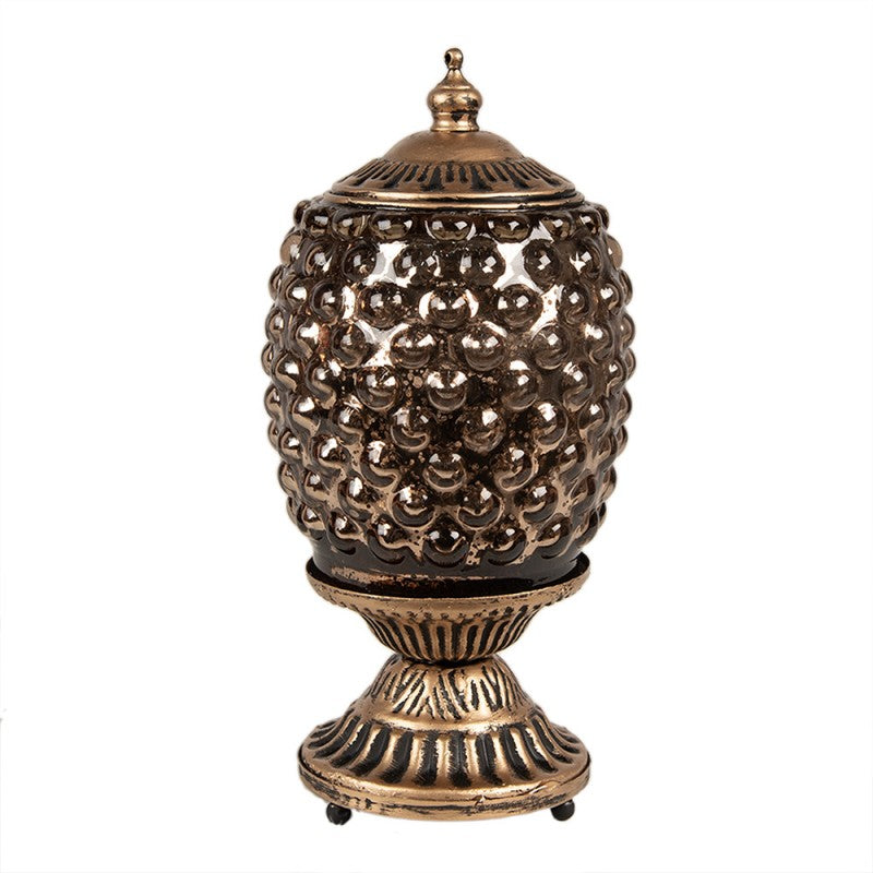 Tillverkad av glas och med metalllock. LED-belysningen skapar en varm atmosfär. Drivs med 2 AAA-batterier, ingår ej.